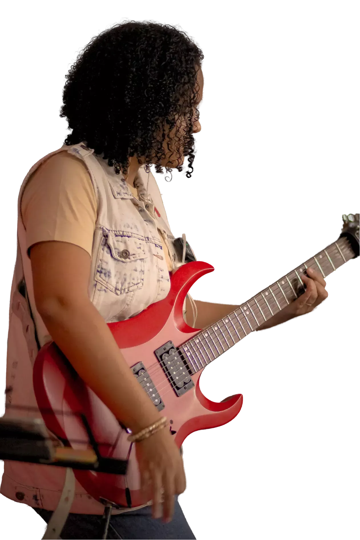 Sempre fui movida pela curiosidade de entender a essência da música; não me contentava em apenas tocar cifras. A busca por conhecimento me levou a estudar harmonia, me permitindo dominar meu instrumento e libertar minha criatividade.